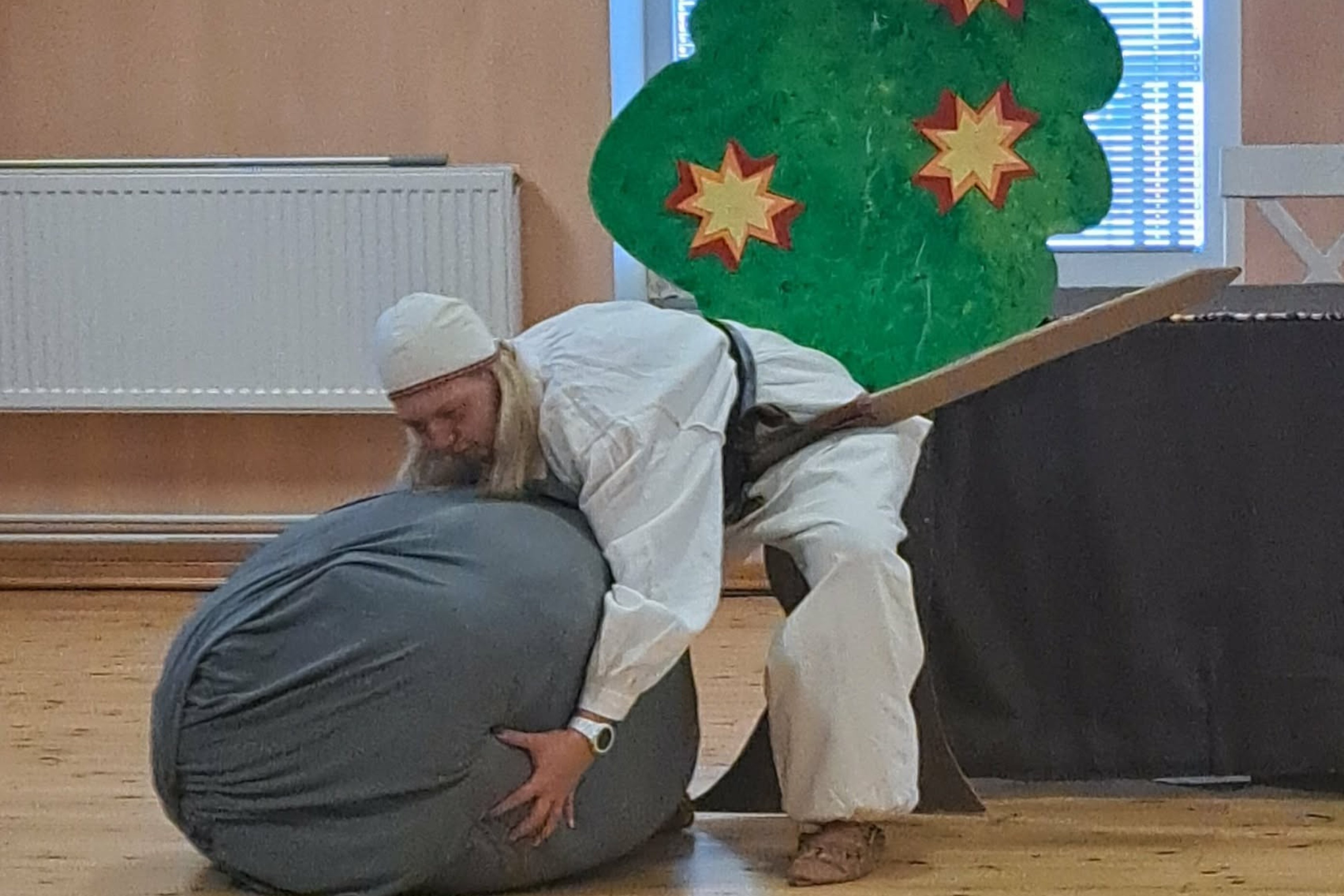 Lapsed said nautida näitemängu Kalevipojast ja siilist, mille esitasid muusikaõpetaja Tiina eestvedamisel Illuka lasteaia Naerupallide õpetajad Mari ja Tiina- Irina.