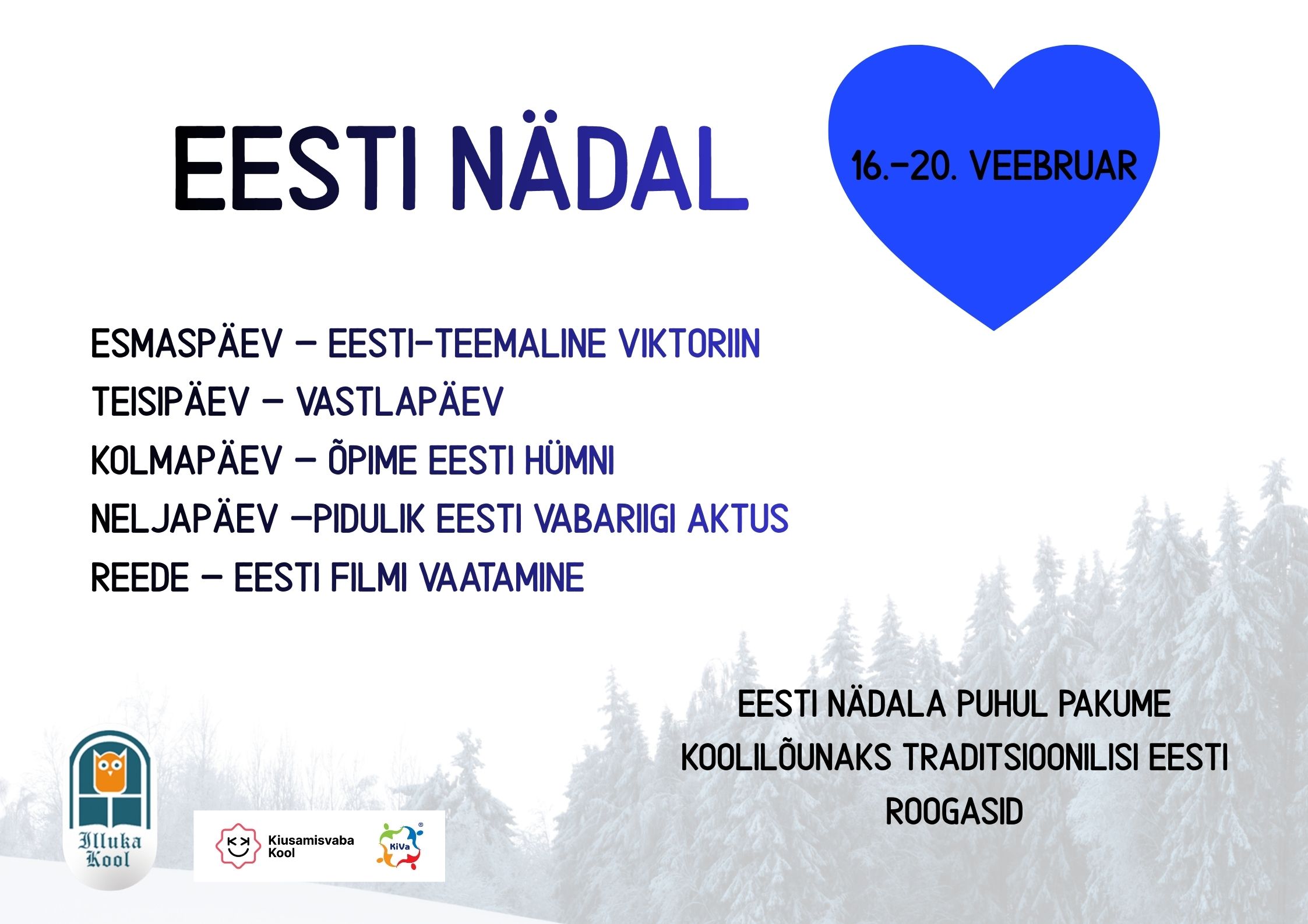 Koostöötunni ajal saavad kõik klassid töölehed, kus tuleb kirjutada Eesti hümni sõnad. - 19.02 Neljapäev – Pidulik Eesti Vabariigi aktus