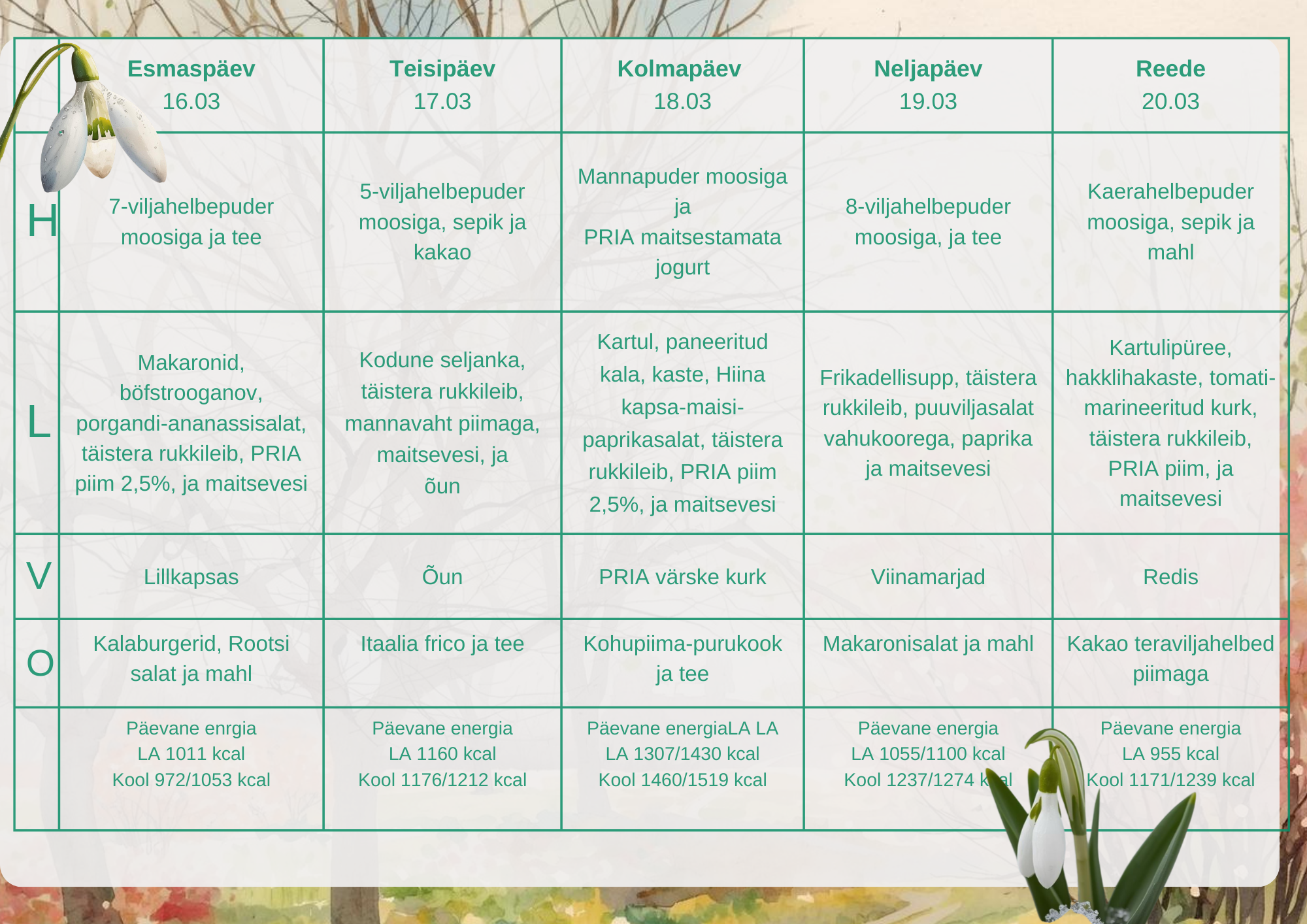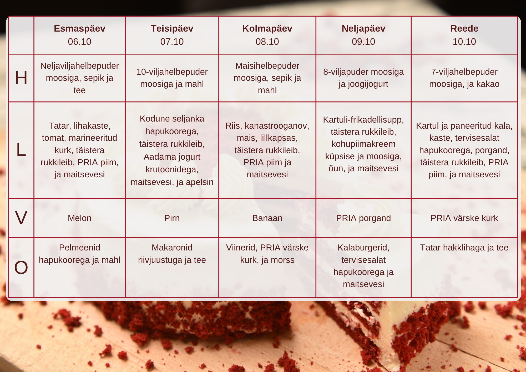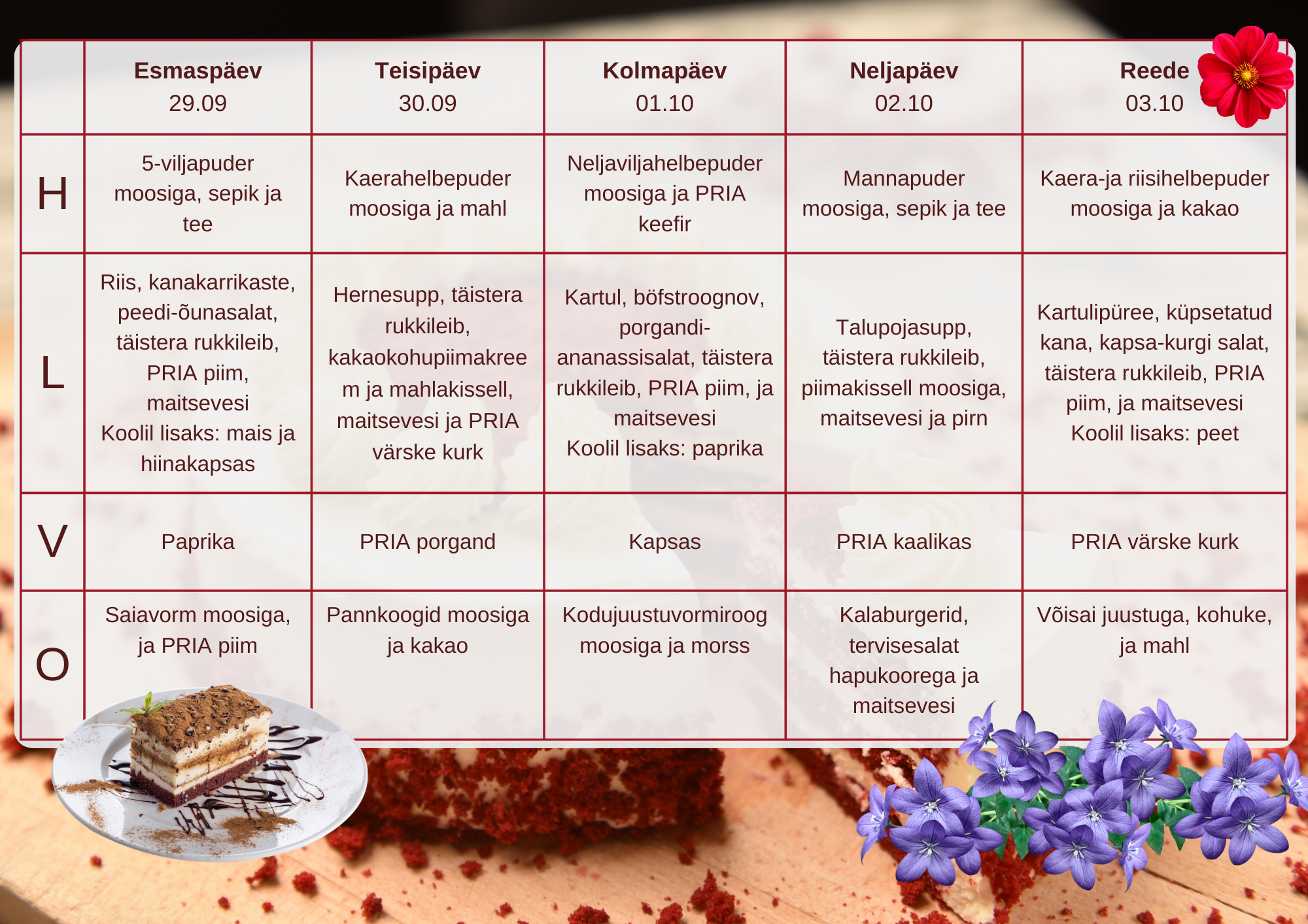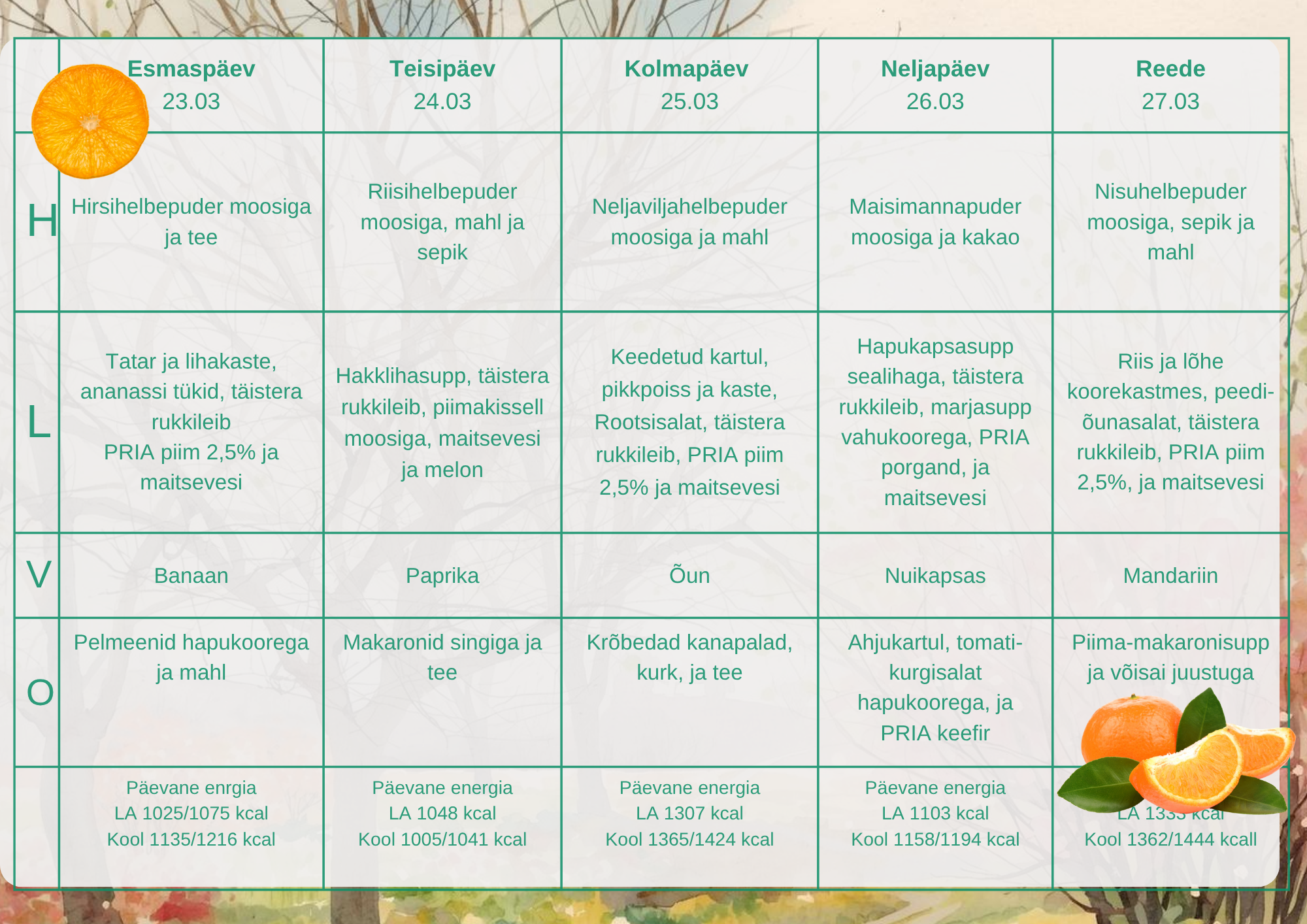 Menüü 2025/26. õppeaastal