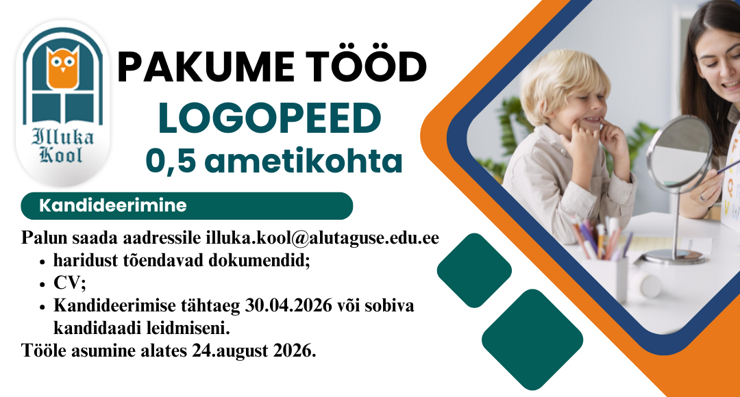 Palun saada aadressile illuka.kool@alutaguse.edu.eelink opens on new page