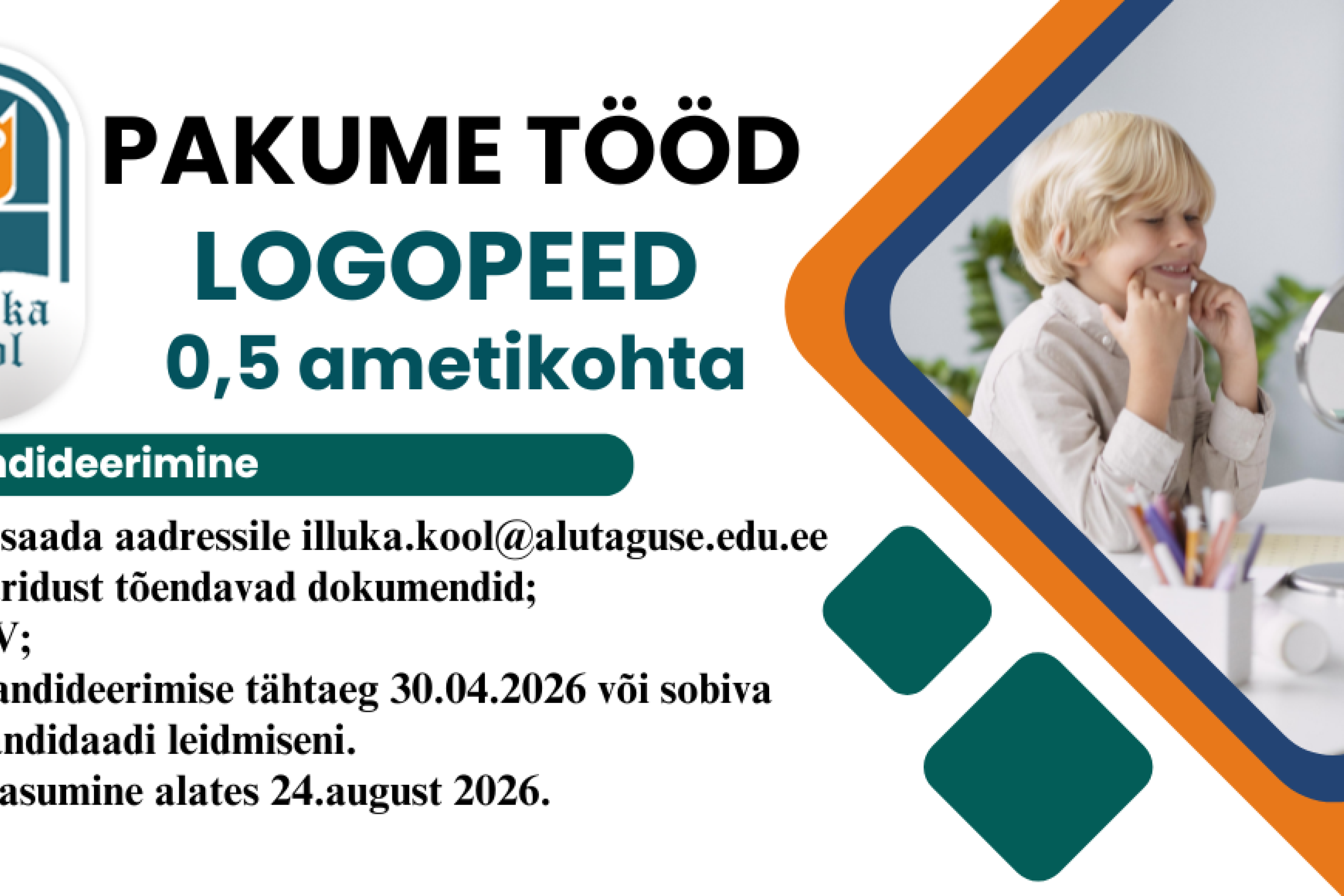 Pakume tööd: LOGOPEED (0,5 ametikohta)