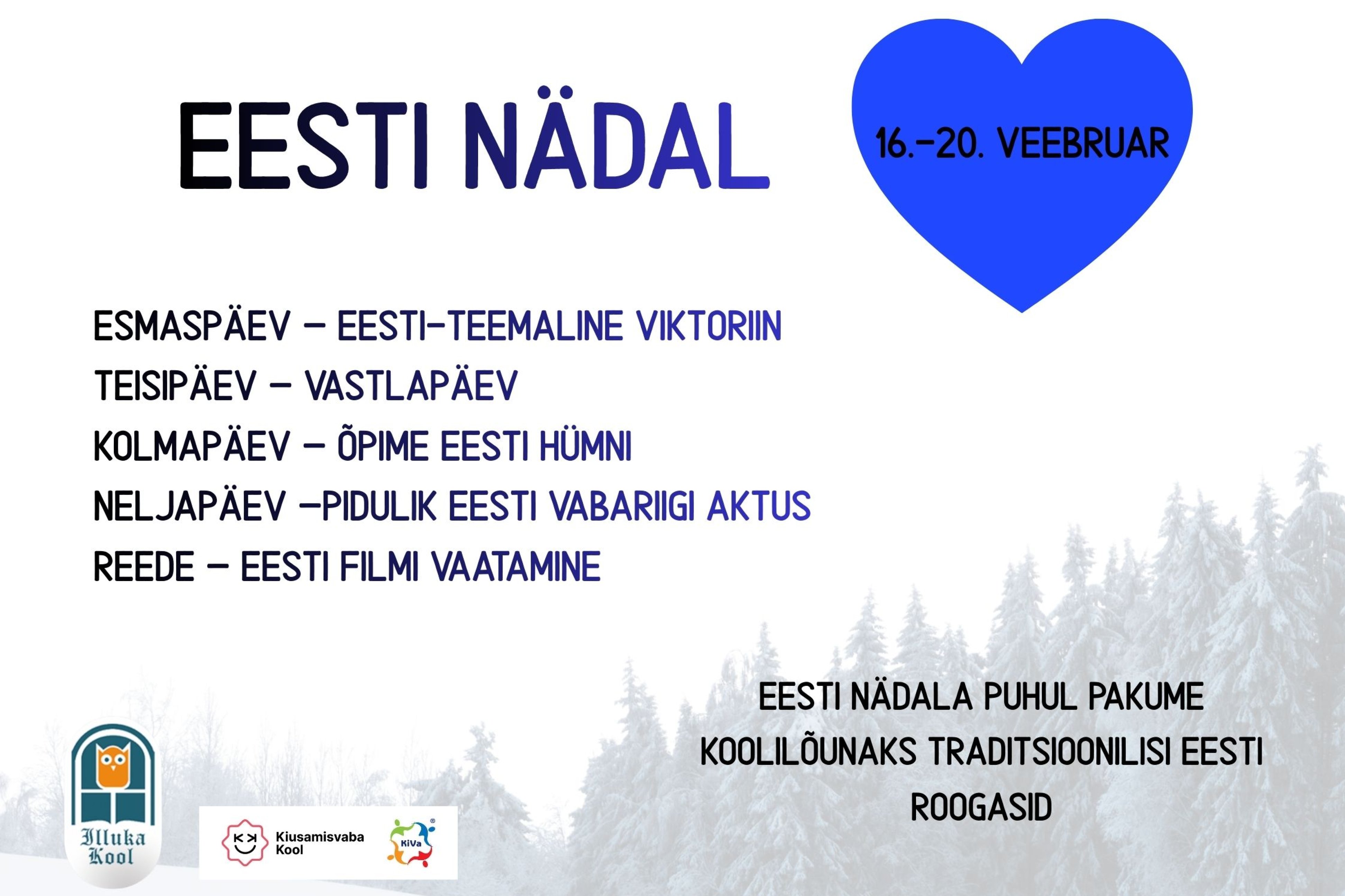 Koostöötunni ajal saavad kõik klassid töölehed, kus tuleb kirjutada Eesti hümni sõnad. - 19.02 Neljapäev – Pidulik Eesti Vabariigi aktus