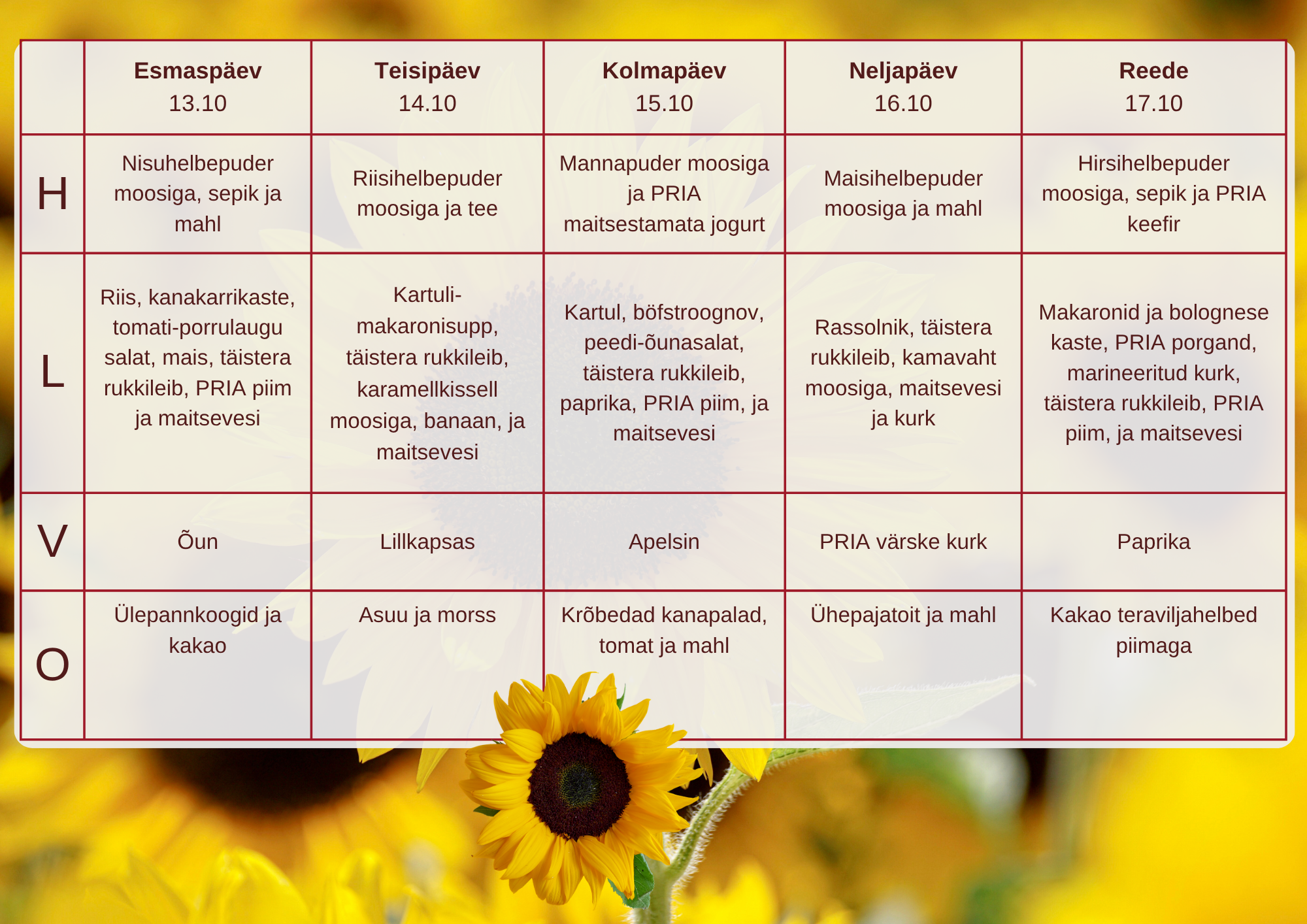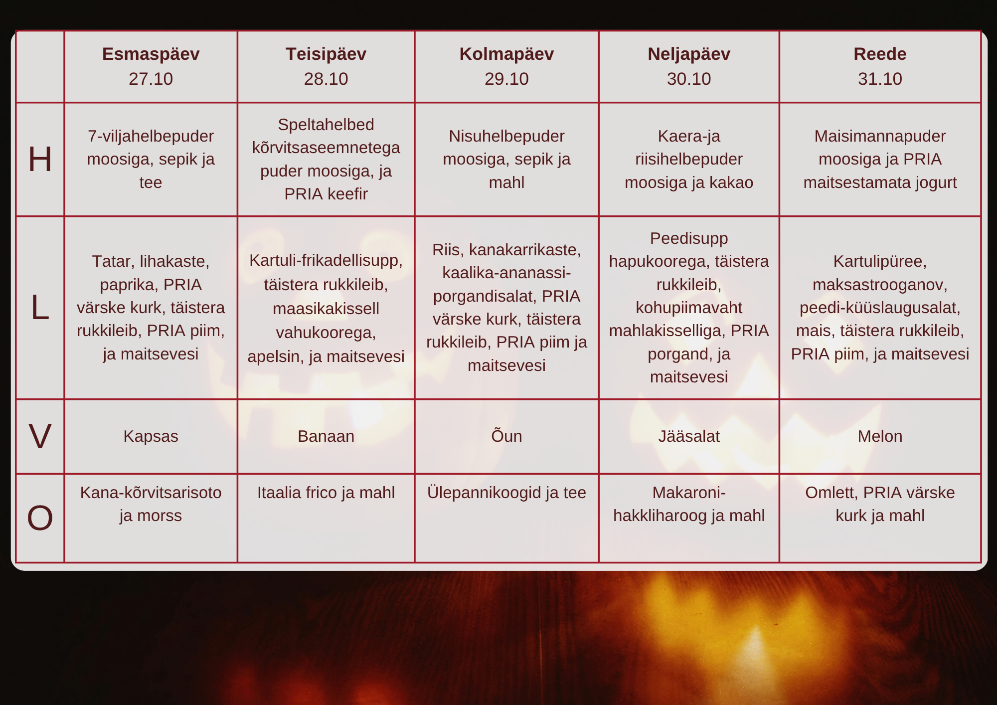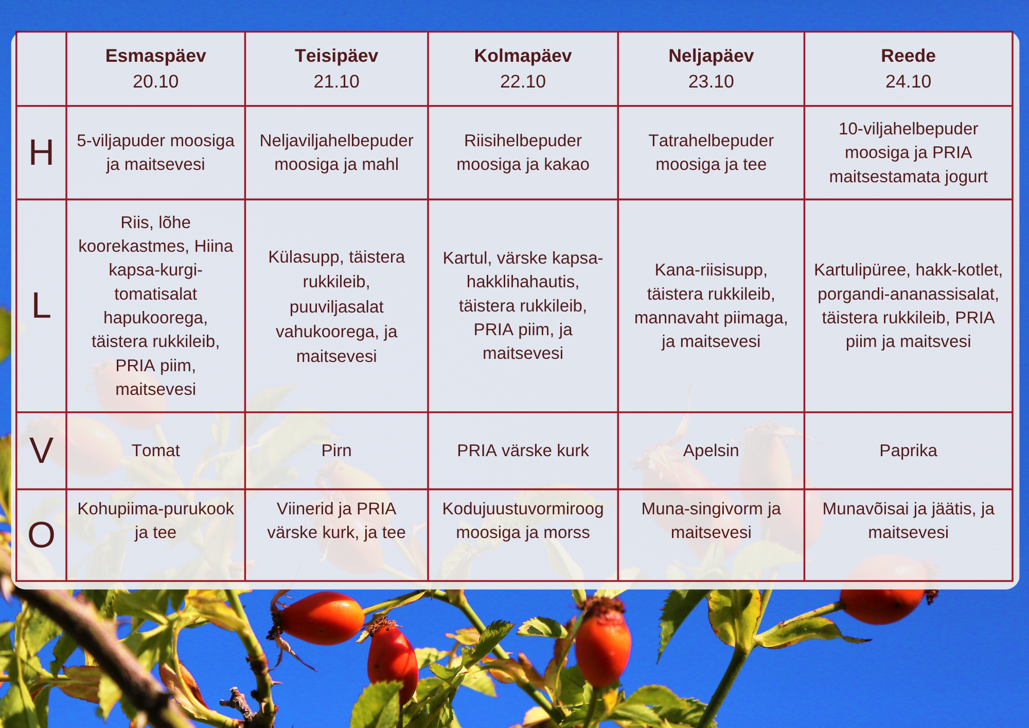 Menüü 2025/26. õppeaastal