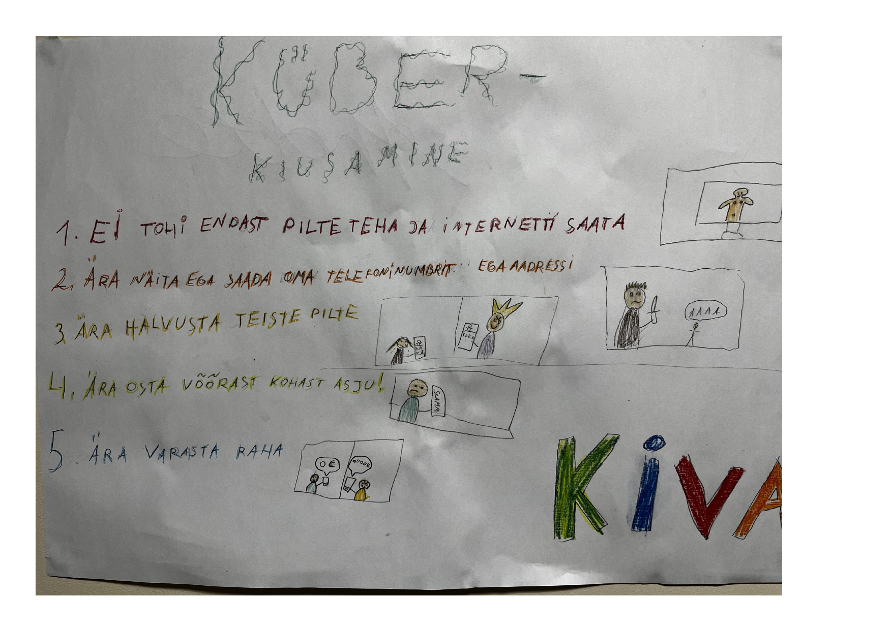 IV klassil valmisid KiVa tunnis rühmatööna plakatid, mis selgitavad, kuidas küberkiusamist vältida.